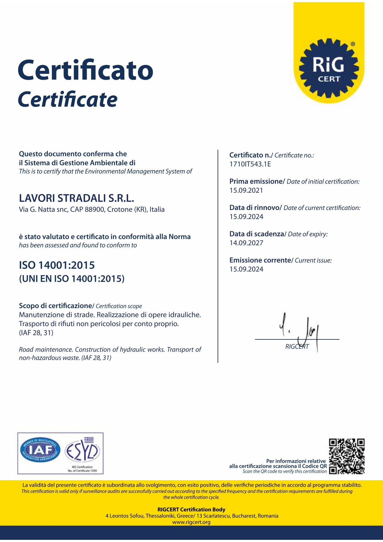 La società nutre un forte legame con il proprio territorio. Da sempre è impegnata nella riqualificazione e nella realizzazione di opere stradali, civili e industriali, sia in Calabria che nel resto d'Italia.